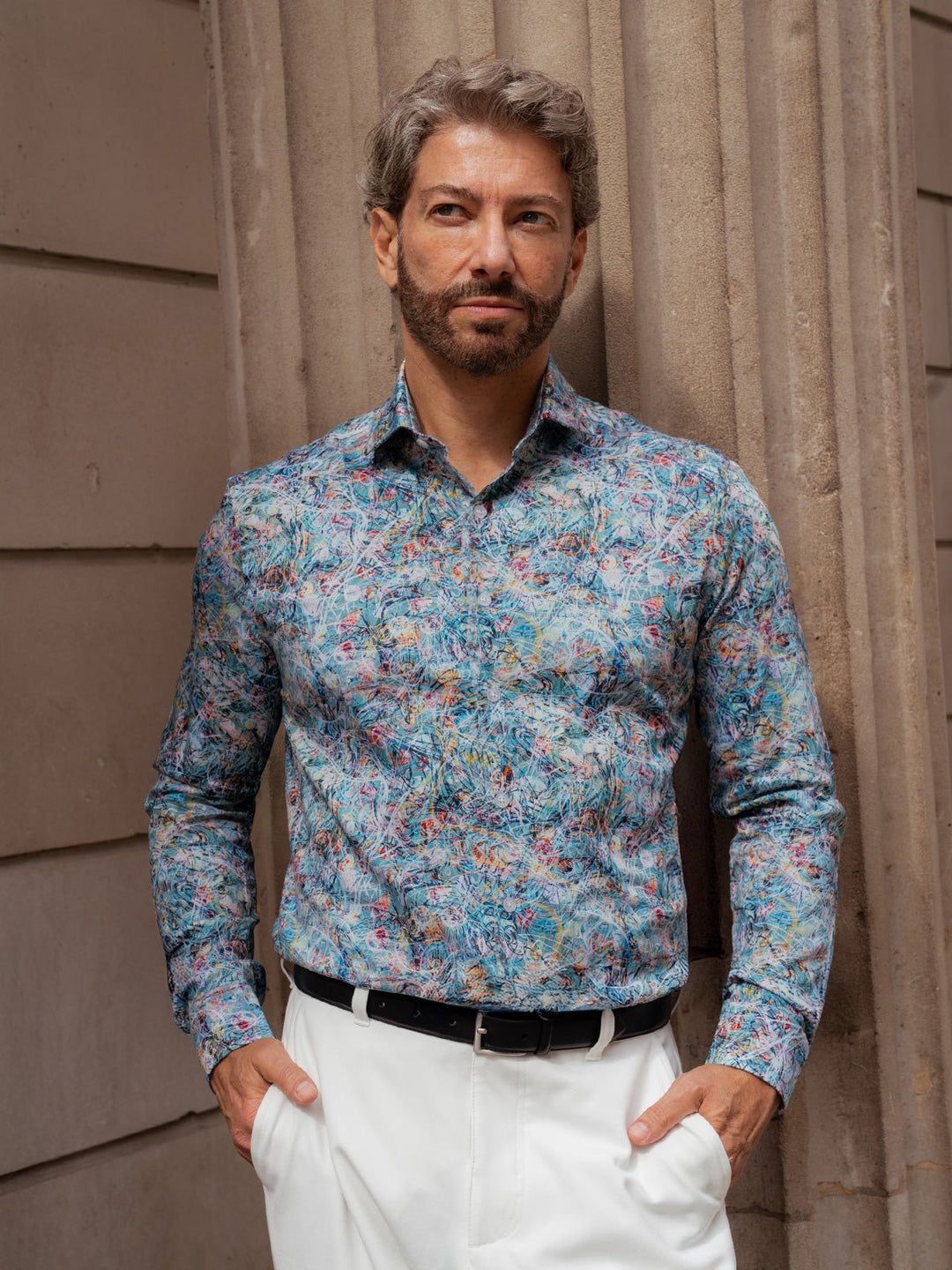 This print is all pen, no pause. Swirling stencil lines flow like waves, tracing the rhythm of a hand caught mid-idea. It’s controlled chaos: part sketch, part statement, all style. Think of it as the visual version of a freestyle verse: crisp, creative, and totally off-script.