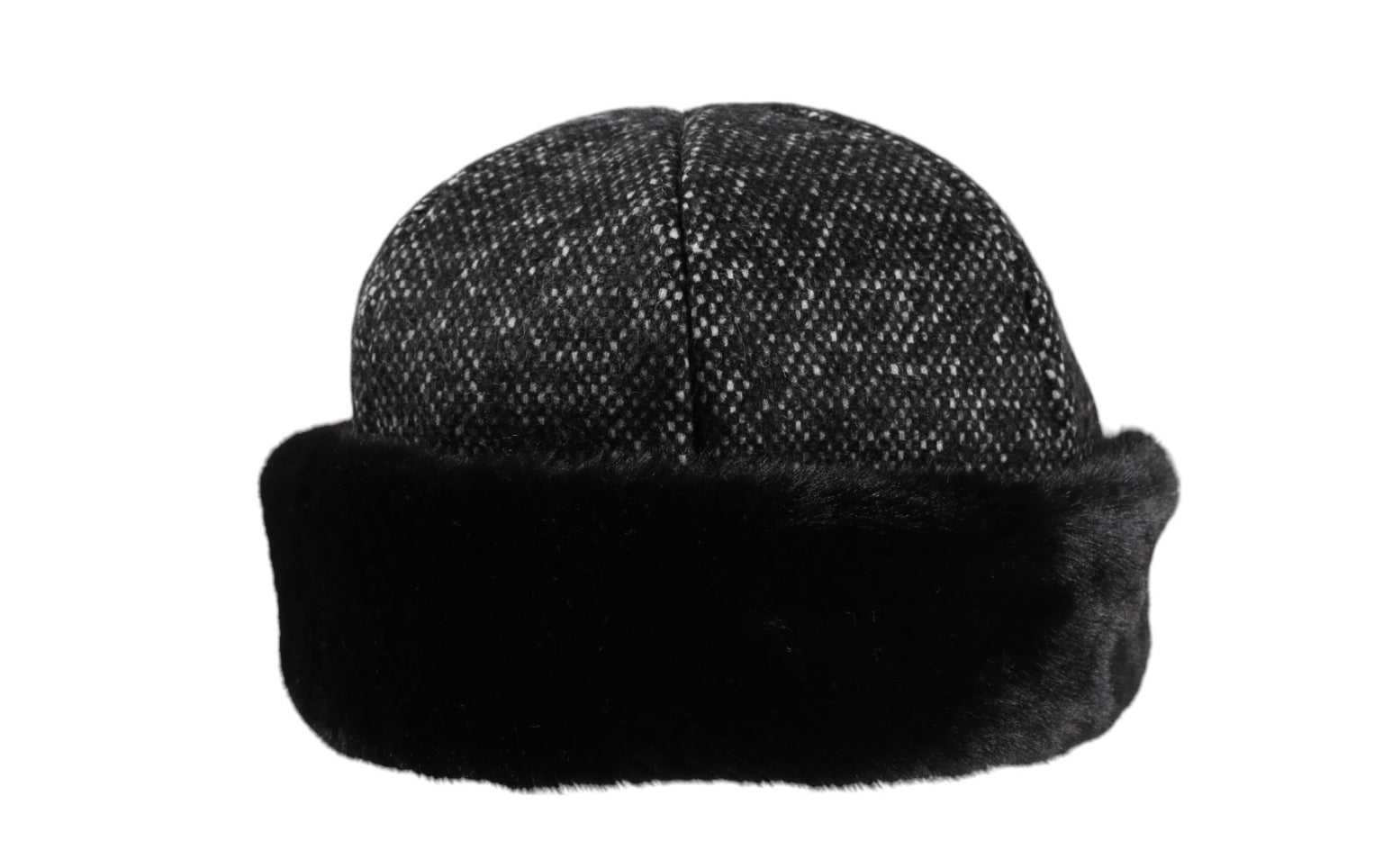 Modern touque with faux fur trim.